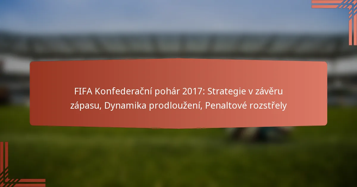 FIFA Konfederační pohár 2017 ukázal důležitost strategií na konci zápasu, kdy se týmy soustředily na udržení kontroly a provádění taktických úprav, aby zajistily své pozice. Jak se zápasy dostávaly do prodloužení, fyzická kondice a psychická odolnost se staly klíčovými pro hráče, aby podali nejlepší výkon. V případě remízy sloužily penalty jako rozhodující metoda k určení vítěze, což zdůraznilo tlak a dovednosti zapojené do situací s vysokými sázkami.