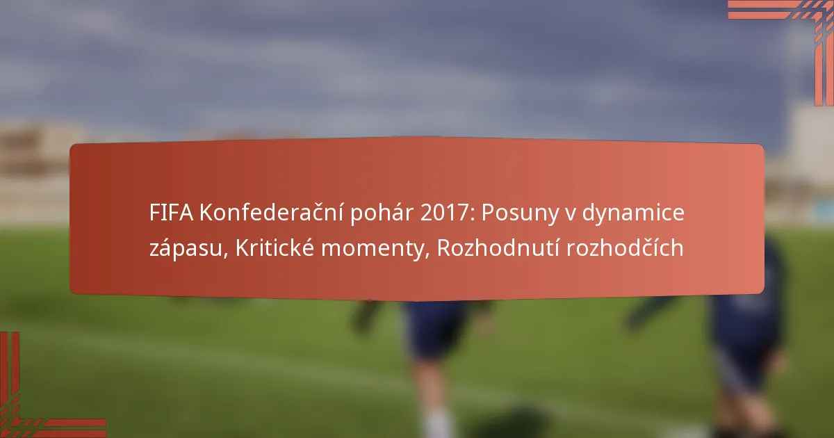 Klíčové změny momentum v FIFA Konfederačním poháru 2017 významně ovlivnily výsledky zápasů, často měnily trajektorii her. Tyto změny byly charakterizovány kritickými momenty, jako jsou gólové akce, taktické úpravy a zranění hráčů, které hrály zásadní roli při určování výkonu týmů.